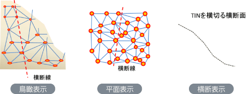 計測点間をつなぐ三角形面(TIN)で地形を表現(モデル) |