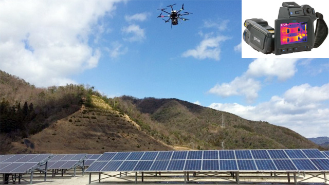 ドローンを搭載したサーモカメラにより、広大なメガソーラや高所にある太陽光パネルを効率的に点検し、異常箇所を発見します。